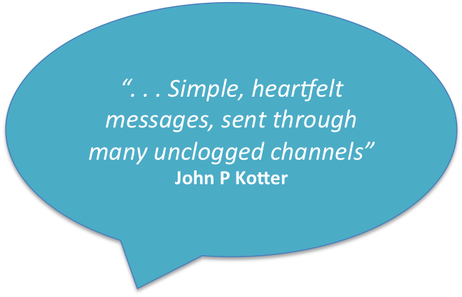 I love Kotter’s description which for me gets to the heart of what good communication looks like: