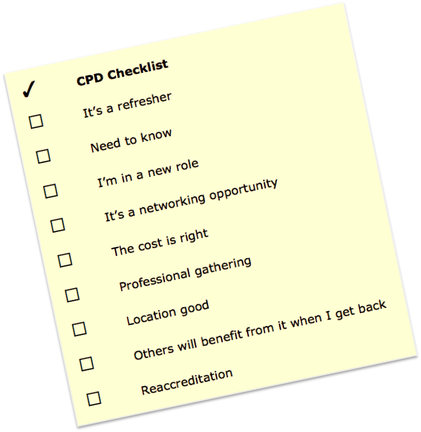 With cuts and budgets and austerity and freezes and targets making the offer of CPD a rarer commodity these days, I’m determined to make sure that it doesn’t waste my time, and that my organisation gets the value out of it that it deserves.