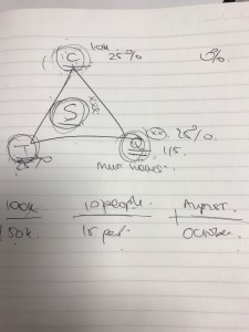 You can probably work it out, but just to be clear, T = time, C = cost and Q = quality. The tripartite, it seems, of all excellent project planning.